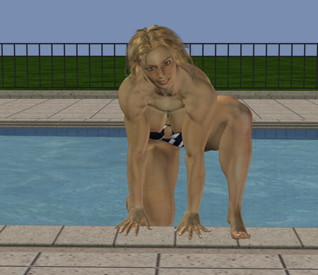 *Jessica-Nicole puts her shades down on a chair with her stuff and slide into the pool*