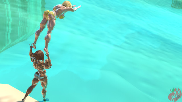 From the angle she's diving at, she looks 1 second away from a belly smacker.
