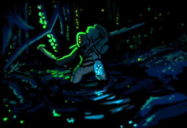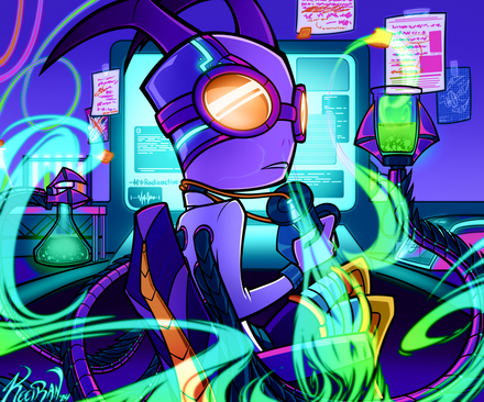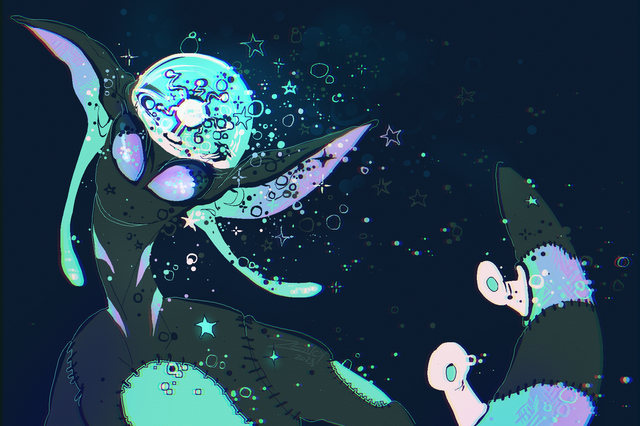 Staying up til 6 AM grants strange results I suppose.I've got a bunch of stuff I'm planning to finish (two of them being much requested continuations...) but I figured I had to finish this while it was still in front of me. It's another random scribble that turned into a painting. I enjoyed the colors, so I decided to upload. I was considering leaving it painterly, but the idea of doing something crisp and clean-cut appealed to me, so I did a proper cleanup.