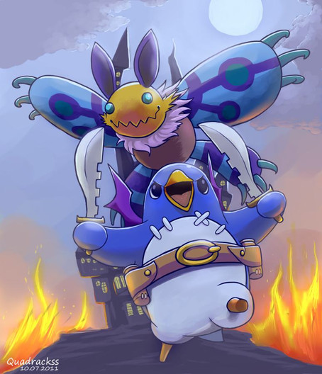 I see Prinny Kurits amongst the horde, while his presence along with the Hero Prinny would help, I can't but think that someone, possibly Etna, would simply throw one Prinny into the army and watch the fireworks. This is simply wonderful, the art style. colors, arrangement and overall theme is the true Disgaea feel to it. Gorgeous work, well done Imson, very well done.