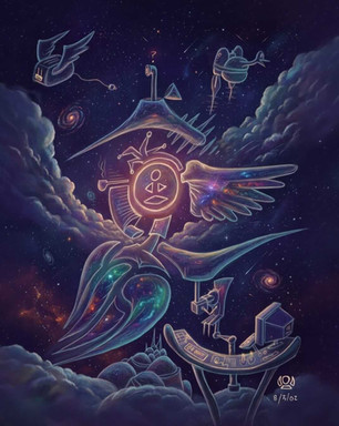 Had no plans when I started this off, they just sort of came as I worked on it. A round robot thing seemed to make sense, and so appairently did syncronised penguin monsters and square clouds. Only thing I know is that it's driectly connected with the two other paintings and that you guys can decide what you think it is for yourselves.