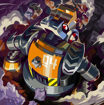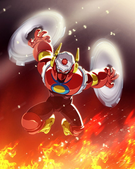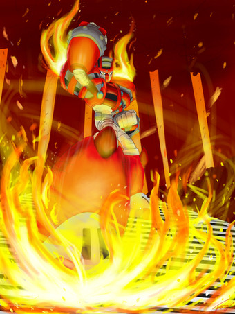 After an update announcement on the Mighty No. 9 pages of a new boss, I realised I had a little extra time. So I decided to do a quick painting of the guy. I'm kind of on a roll right now I suppose.No. 1 produces a suit of fire through his fairly lanky under-body. Thought it was an interesting duality to the character. And it allowed me to draw lots of fire, so there's that.