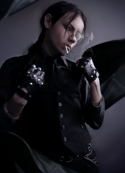 Very classy appearance. I think the 'green' tint accentuates your affect quite nicely. Some high-end clothing line should pick this up for a sales advertisement. Not that portrait doesn't express a bold attitude on it's own.