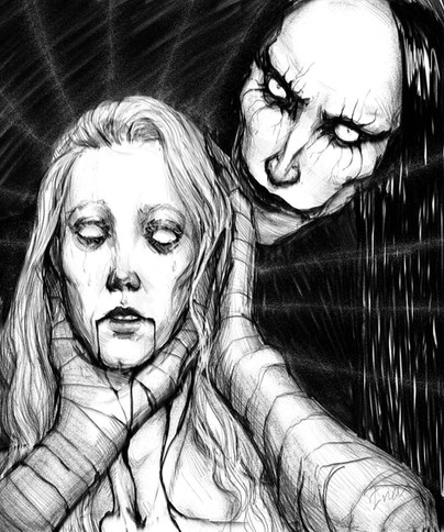 #blackandwhite #blackart #blackeyes #gothicart #graphic #horrorart #horrormacabre #macabreart #patterns #portrait #sketch #creepyart