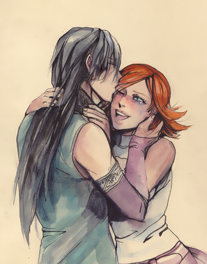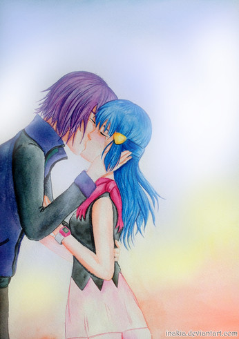 #couple #cute #fanart #hilda #kiss #pairing #pokemon #sad #tears #touko #white #n #animemanga #traditionalart #ferriswheelshipping