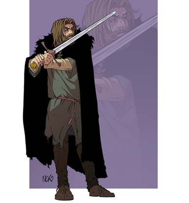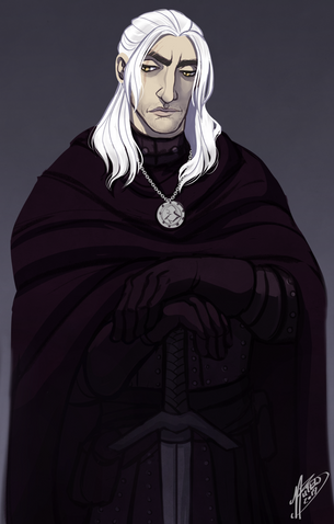 Conocido como "lord cuervo de sangre", "cuervo de tres ojos". Fue uno de los grandes bastardo de Aegon IV. En la rebelion fuego oscuro peleó del bando de Daereon II, donde perdió un ojo en la batalla delPprado de Hierbarroja. Fue mano del rey Aerys I y Maekar, también fue lord comandante de la Guardia de la Noche, sin embargo desapareció en una expedición más allá del muro. |[ENG] known as "blood crow lord", "three-eyed crow". He was one of the great bastards of Aegon IV. In the dark fire rebellion he fought on the side of Daereon II, where he lost an eye in the battle of the Red-Iron Country. It was the hand of King Aerys I and Maekar, he was also Lord Commander of the Night's Watch, however he disappeared in an expedition beyond the wall.