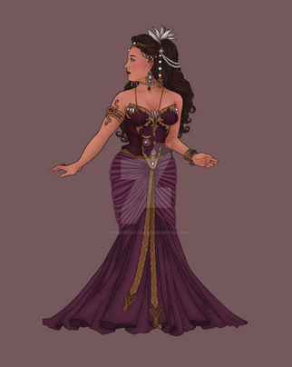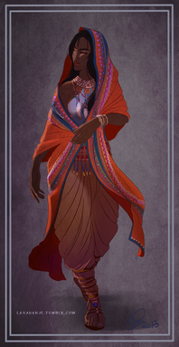 A Princess, a dress design, or a drawing of a dress. Her style, or at least the patterns on her shawl were supposed to be inspired by indigenous Australian cultures (the actual dress isn't so much) but in the absence of me doing any proper research maybe it's best to just say this is in a fantasy setting. Maybe she's an elf, she is very elegant and you can't see her ears.Related content