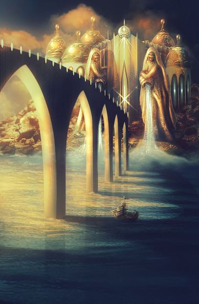 Your lighting is really quite nice, and it is what really ties the pieces together. I like how the light falls at the top of the image and then around the lantern. The blue and gold tones are really cool and emanate from the light sources in the piece, as appropriate.