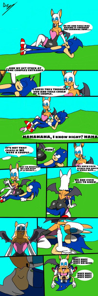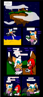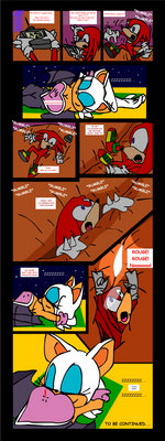 Rouge has stolen some essence from the Master Emerald and challenges Knuckles to find it on her person. Something which is going to take a lot longer than you'd think. Knuckles goes for the obvious place and some mysterious force pulls him into Rogues 'Treasure Chest'. Knuckles begins his search for the Master Emerald essence but Rouge warns him to stay away from her cleavage, because anything that falls in there she has trouble finding again.