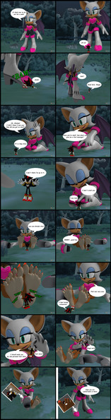 Rouge has stolen some essence from the Master Emerald and challenges Knuckles to find it on her person. Something which is going to take a lot longer than you'd think. Knuckles goes for the obvious place and some mysterious force pulls him into Rogues 'Treasure Chest'. Knuckles begins his search for the Master Emerald essence but Rouge warns him to stay away from her cleavage, because anything that falls in there she has trouble finding again. But Rouge while in her sleep Knuckles falls into her cleavage and now he's falling down into the mysterious depths of Rouges' cleavage.