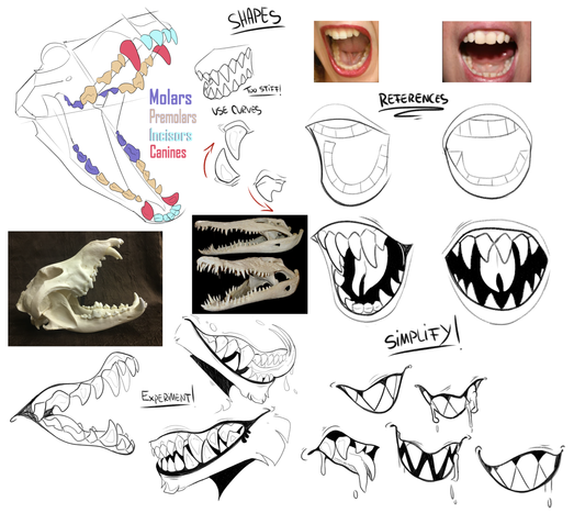 This is a little hint for me how to draw dog teeth. Maybe it will help you too! I must warn you: I do not pretend to be anatomically correct, rather I conducted an analysis of the dog's skull, as well as an analysis of how more experienced artists draw (whose style I like, for example, Remarin, Daffy, LiLaiRa). Therefore, there are elements of stylization here. I hope it will also be useful to you:>-------------------------------------