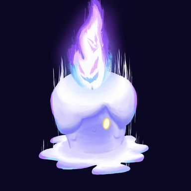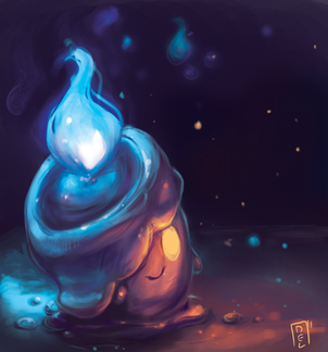 I'm not sure whether that stuff is smoke from its flame going out... or its flame is just massive because it murdered an entire village by sucking their souls dry once it gained their trust with its innocent demeanor and cute charms. @-@