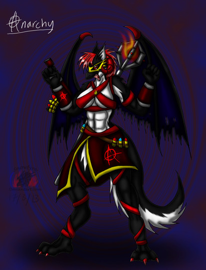 Fain Ragnarok is the sister of story protagonist Echodan Ragnarok, her twin brother. They both are AU versions of Incendramon and Femacendramon, but here it is placed in a special layered world with a cyberpunk setting.