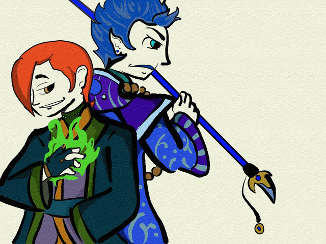 What a lovely drawing, particularly like their facial expressions. It's an interesting concept; in canon, could it have stemmed from the alternate timeline if the Xiaolin Monks hadn't succeeded in winning the showdown in the last episode? This would result in a recently turned Heylin Chase with a defeated Good Jack trapped in a dystopian, Heylin ruled world.