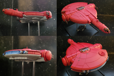 The final X-Wing Miniatures model I had left to paint. Looking at the model, I felt like they purposefully broke up the front superstructure to make it look like it had an open jaw, and the fact that they named it C-ROC doesn't feel like a coincidence. That in mind, I wanted to show off the effect for this last one and also tie in nicely to the first mini I painted from this set (the Headhunter which I also took a swing at putting a shark mouth on).This was a fair bit bigger than all the other ones I had painted at 11" long, in fact I messed up a bit over spraying it with sealant and had to go back in to do some clean up for the bits that fogged. In the end though, I'm just happy to finally turn the last page here and put the capstone on my Scum and Villainy forces.