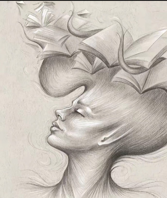 This painting could also be seen as "You become what you read." Everyone is shaped by the thoughts they encounter.