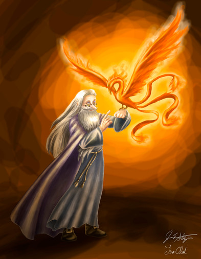 Dumbledore and Fawkes (c) JKRowling