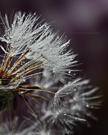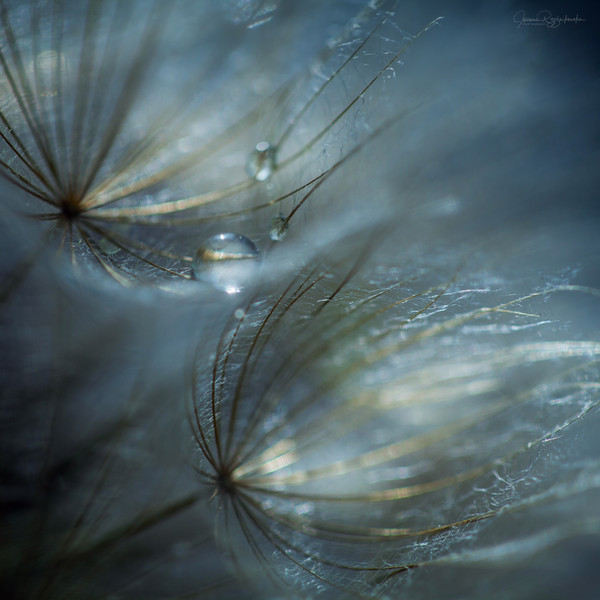 The subject matter may be fairly common but the detail is one of a kind. The delicate nature of the flower in seed along with the small drops of water and the single large drop brings in another layer of nature and only adds to it's delicate theme.