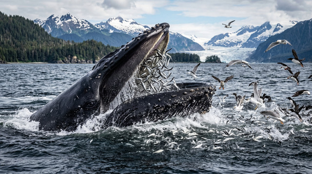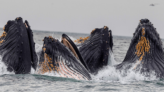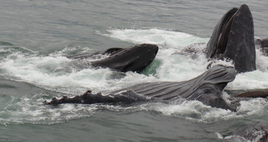 Megaptera novaeangliae, humpback whales. Lunge feeding.