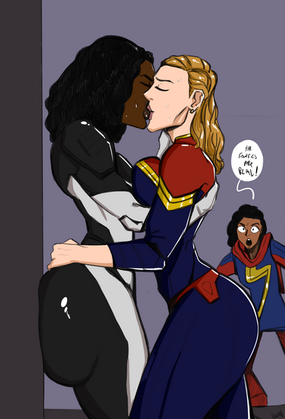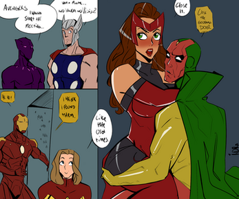 #comic #couple #crossover #dc #fanart #flirt #heightdifference #hugetits #marvel #mashup #nsfw #powergirl #vision #commissionsopen #holdingbutt
