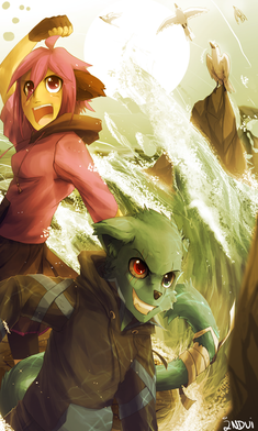 (the clouds look a bit unfinished...) But that's okay, because the characters and colors look badass. ^^
