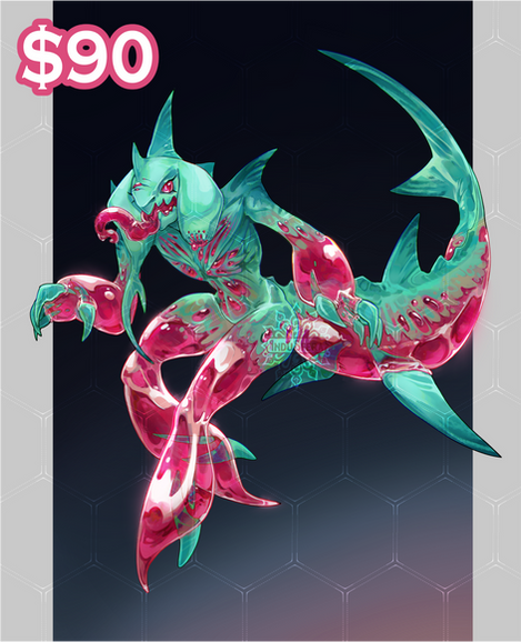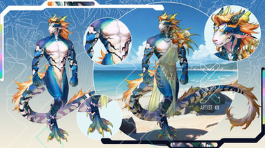 #anthro #character #closed #copper #custom #design #fins #horns #monster #myo #red #species #teal #indusfera #symprite #capricorn #customcharacter #hooves #closedspecies