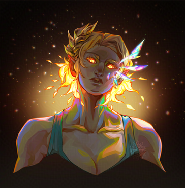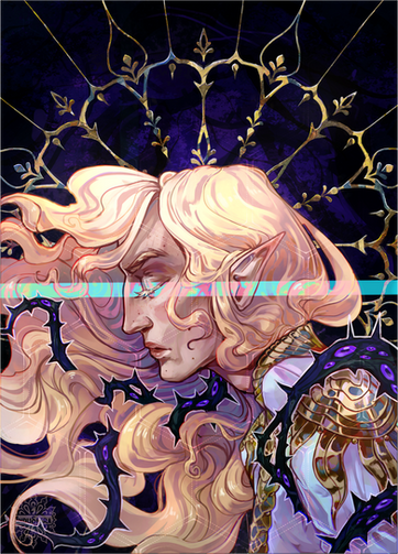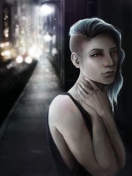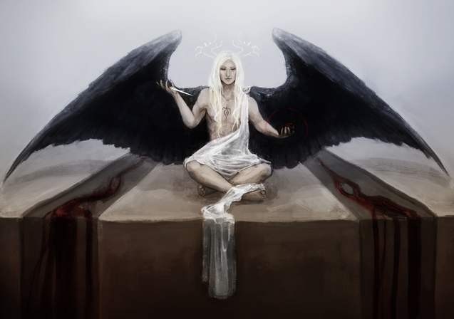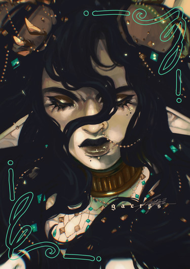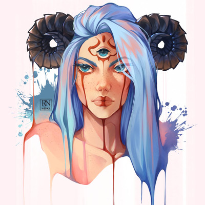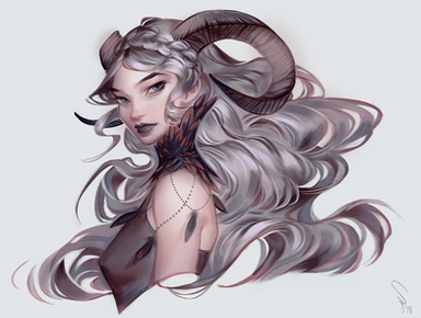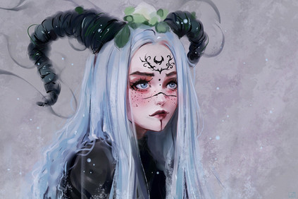 #black #blonde #blue #character #concept #demon #digital #horns #illustration #light #oc #original #painting #portrait #white #art