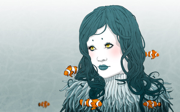#aqua #astronaut #blue #bubble #bubbles #canada #explorer #fantasy #green #illustration #indy #lady #lake #lytle #pretty #toronto #water #indylytle #art #fabledcreative #angelfish #clownfish #orange #teal