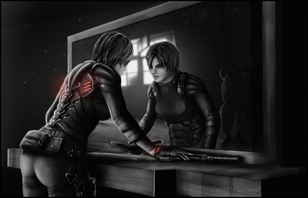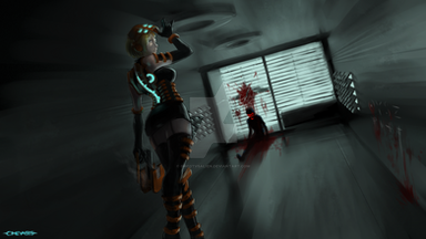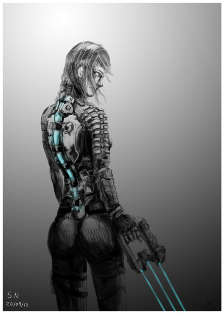 Me gusta bastante la composición <3, la luces y sombras quedan muy bien, le da volumen a la figura.Y esa silueta del alien genera mal rollito.