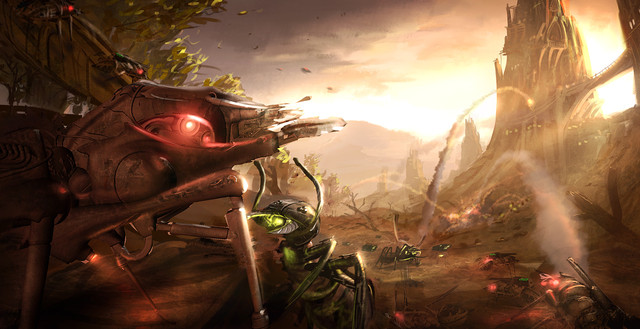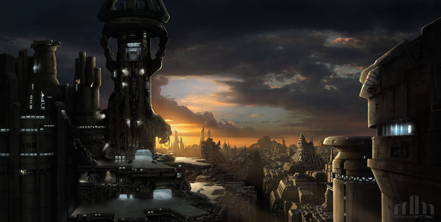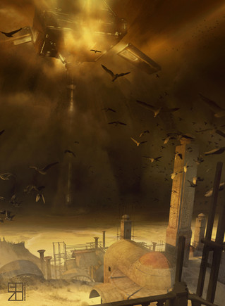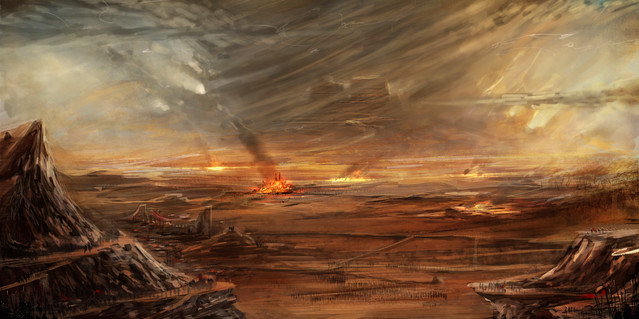 Based on a 3D blockmodel I started the matte painting which measures 6k in the original.