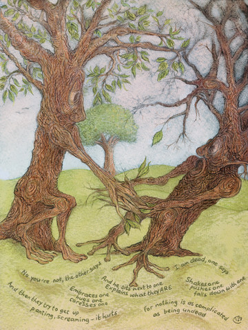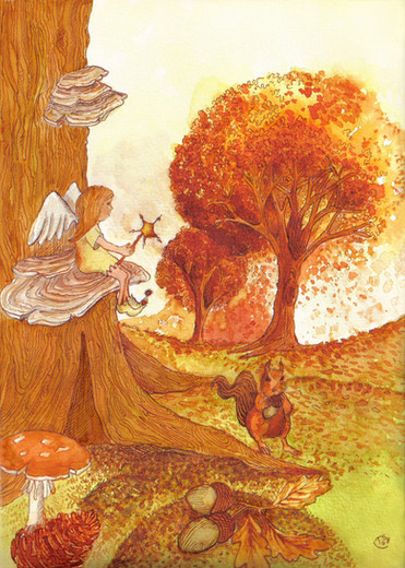 Watercolours, pencils, ink.