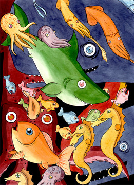 Watercolours, pencils and ink.