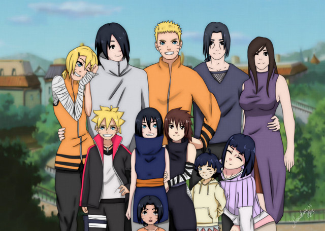 Honestly Sai and Ino's kid (don't know if it's a boy or girl, I think it's a boy)is not attractive, I wish they'd given him Ino's skin tone and Sai's black hair. Shikadai looks like Shikamaru so that's okay, and ChouChou is so adorable lol. I really do not like Bolt and Himawari's hair styles, the artists could have came up with something better than that but oh well lol. Salada is decent looking I guess, it could've been worse.