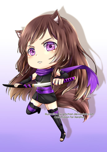 omg assassin chibi!!! one moment your looking down at it and think "Aww so cute", the next ur looking up at it while it wipes its daggers clean.