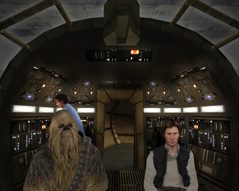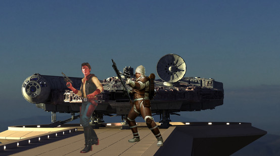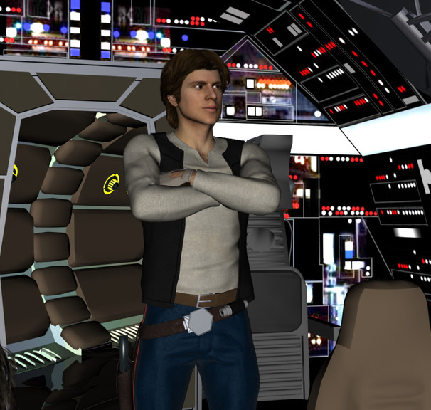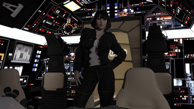 Felana steps into the Interactor and fulfills one of her fantasies.Felana: "You've never heard of the Millenium Falcon? It's the ship that made the Kessel run in less than 12 parsecs."