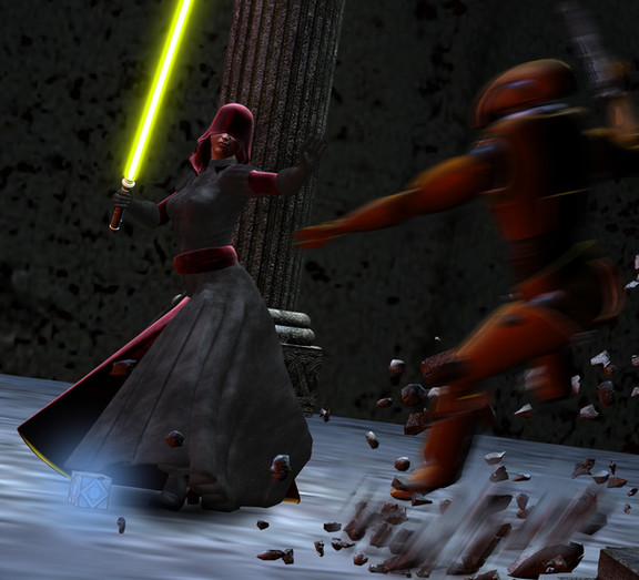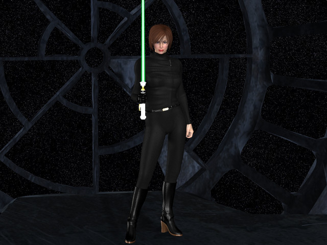 Looks nice. I like that armor, sort of a cross between arabian looking and ninja-style. The ground seems a bit bland, unless a light was shining on her, and it's hard to tell how she's gripping her lightsaber. But overall, lovely. The detail on her is awesome.