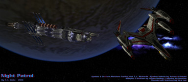 Early in their teaming, Joelle and Felana were given what might be the best equipped ship in this half of the universe. Given the name due to an initial malfunction of her Quantum subspace slipstream drive, shortly after she was launched, the Random Chance has and continues to get the two ladies out of the messes that they always seem to find themselves in.Peregrine class cruiser