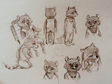 Some stress drawing I did earlier today with my good ol' raccoon pal Rocket..and yes I'm a huge fan of anything superhero related