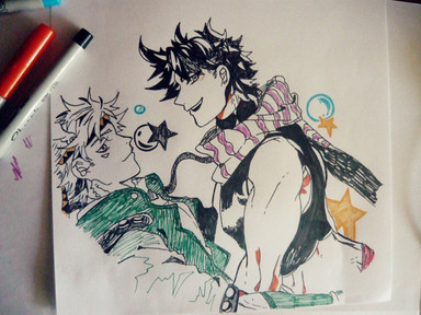 This was supposed to be some Josuke x Ceasar.It was a good practice to draw the italian boy.