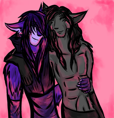 Late night doodle for *Hexebus-DraemooreLittle dude on Linka's shoulder is my male sona.