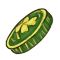 a coin with lucks face on it