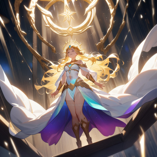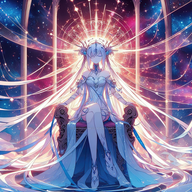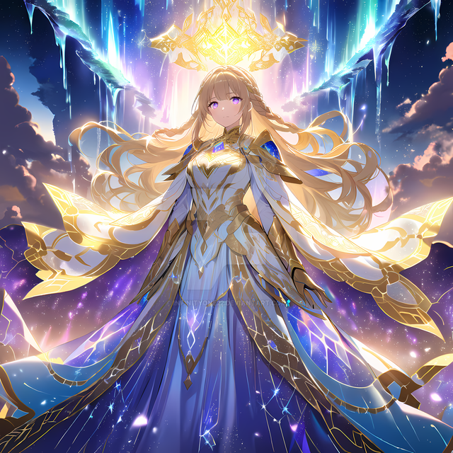#anime #magic #digitalart #animegirl #angel #armor #artwork #beautiful #blonde #celestial #crown #crystals #divine #epic #fantasy #fantasyart #glowing #goddess #illustration #longhair #orb #powerful #purpleeyes #queen #sky #whitedress #goldarmor #waifu #aiart #aigenerated