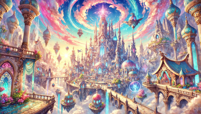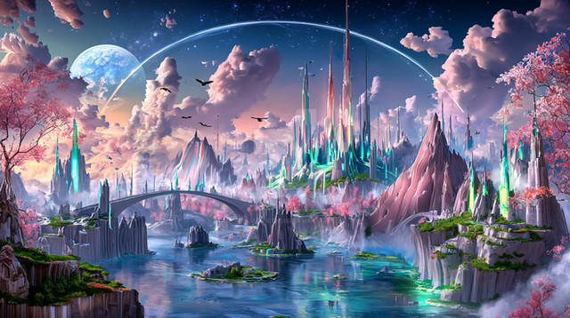 #digitalart #anime #architecture #blue #celestial #clouds #dreamlike #exploration #fantasy #fi #floatingislands #green #highquality #illustration #landscape #moons #otherworldly #pink #planets #purple #rings #sci #sky #vegetation #vibrant #waterfalls #art #wonder #futuristicstructures #infinityone22