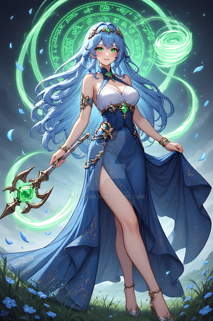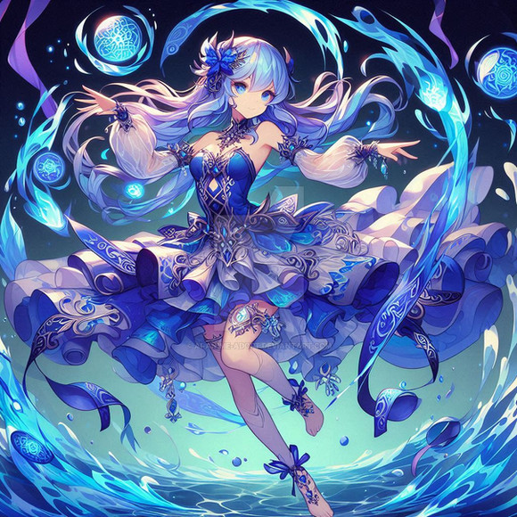#anime #magic #digitalart #animegirl #animeart #beautiful #bluedress #characterdesign #conceptart #deviantart #digitalpainting #elegant #elemental #fantasy #fantasyart #fountain #glamour #goddess #illustration #kawaii #masterpiece #moonlight #night #originalcharacter #water #trending #aiart #art #aigenerated #infinityone22