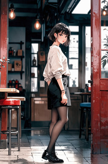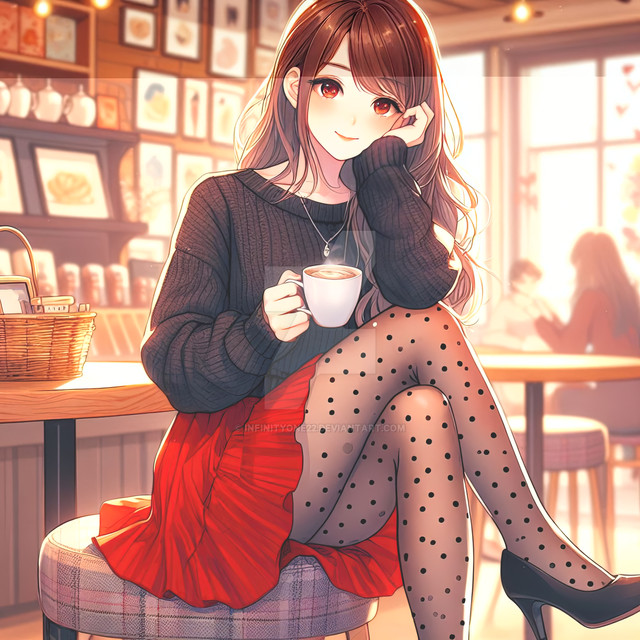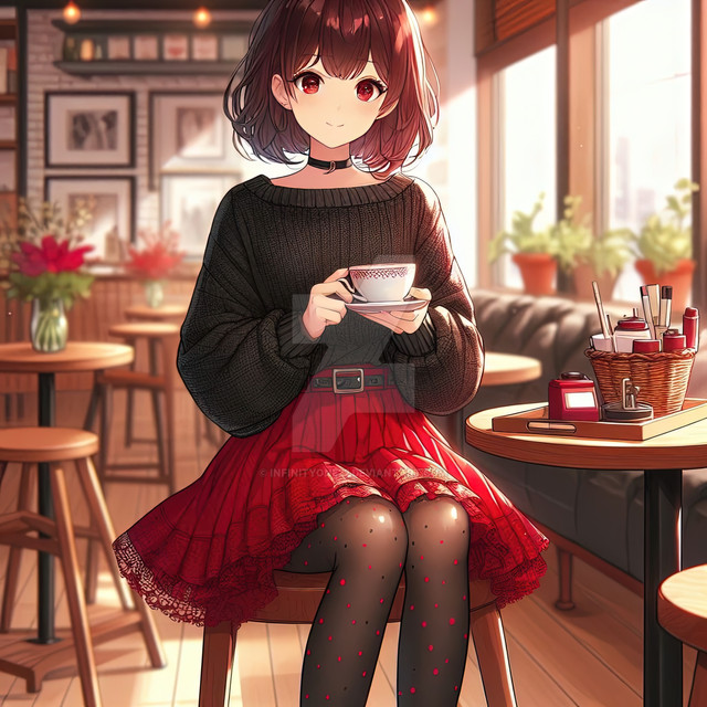 #digitalart #anime #characterdesign #animegirl #adoptable #beauty #apron #bar #blouse #cafe #casual #charming #coffee #counter #girl #hair #interior #lace #legs #modern #redhead #shoes #skirt #smile #sunlight #tights #uniform #waitress #art #infinityone22