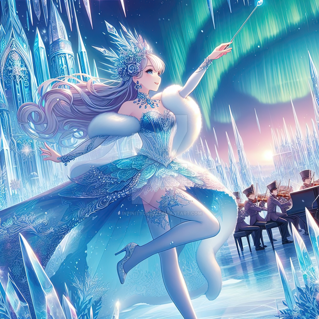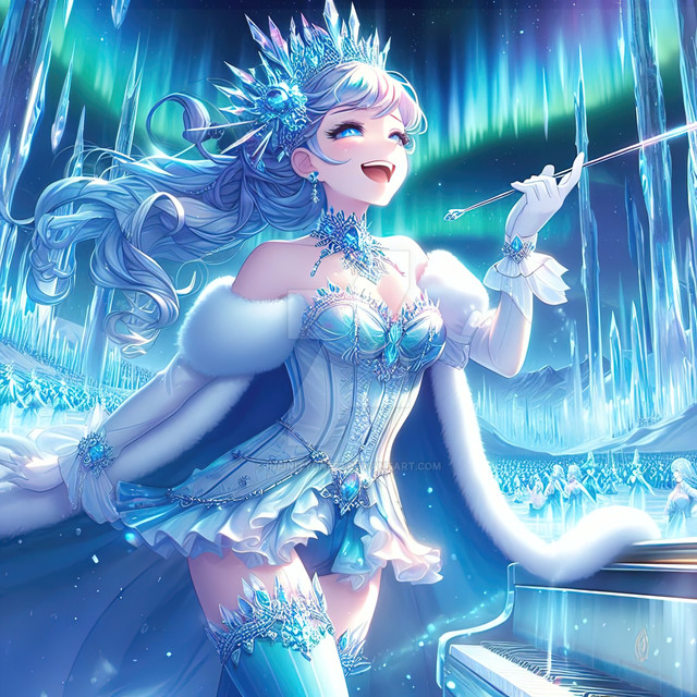 #anime #artistry #blue #cold #conductor #crystals #drawing #dress #elegant #etherealbeauty #fantasy #fantasyart #femalecharacter #ice #icecrystals #illustration #magical #music #musicalperformance #orchestra #performance #snow #winter #musicconductor #art #detailedoutfit #icyenvironment #icybluedress #sparklingoutfit #crystalembellishments