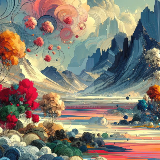 #bright #bubbles #circles #colorful #creative #details #digitalart #dreamy #ethereal #fantasy #futuristic #goldenhour #illustration #imagination #landscape #magical #mountains #mystical #nature #patterns #sunrise #surreal #textures #trees #valley #vibrant #waves #art #abstractart #abstractdigital