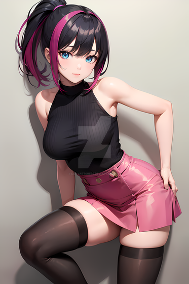 #digitalart #anime #characterdesign #animegirl #adopt #adoptable #brownhair #casual #cute #fashion #gloves #lace #leather #leatherskirt #manga #miniskirt #modern #oc #pantyhose #ponytail #pretty #simple #smile #style #tights #vinyl #whitebackground #patternedtights #aiart #aiadopt