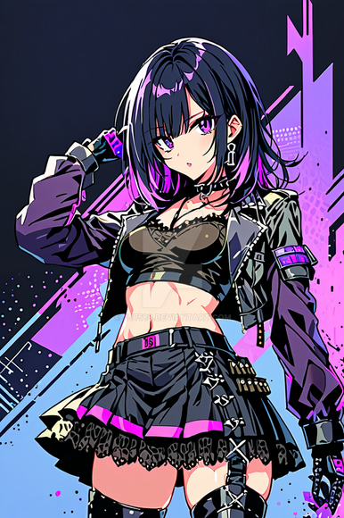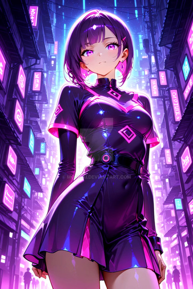 #digitalart #fanart #anime #characterdesign #animegirl #alluring #beautiful #blackdress #blueeyes #chic #confident #croptop #cyberpunk #detailedbackground #futuristic #girl #glowing #gorgeous #jewelry #miniskirt #modern #neon #poised #shorthair #shortskirt #stylish #tights #title #infinityone22