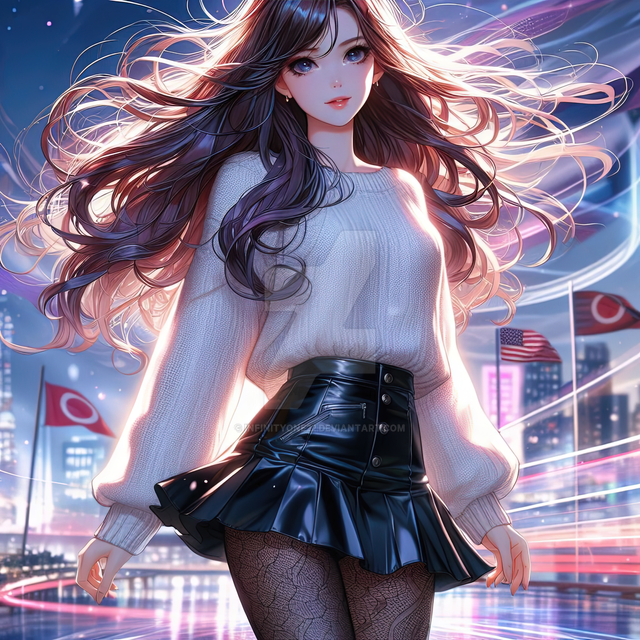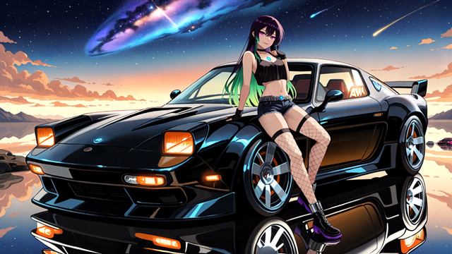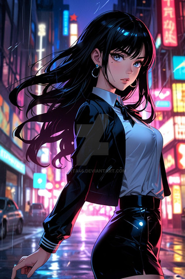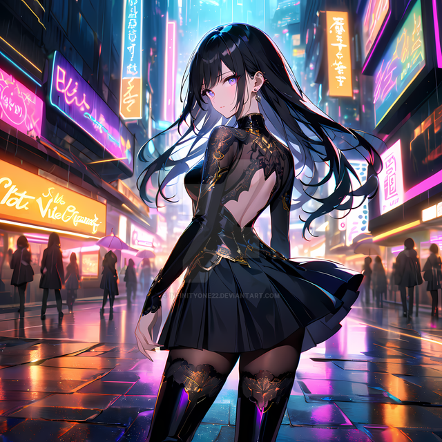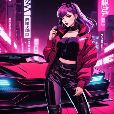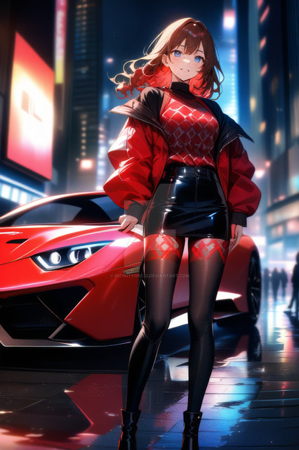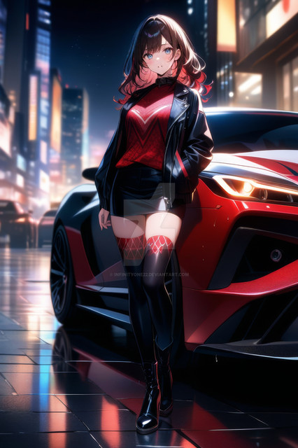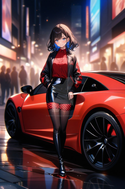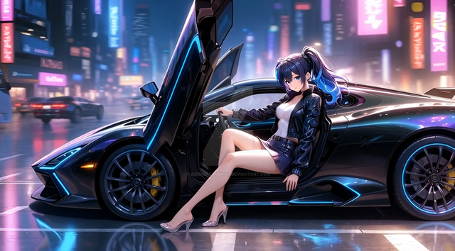#digitalart #characterdesign #beauty #anime #cyberpunk #girl #illustration #sports_car #night_scene #modern_fashion #vibrant_colors #neon_cityscape #infinityone22